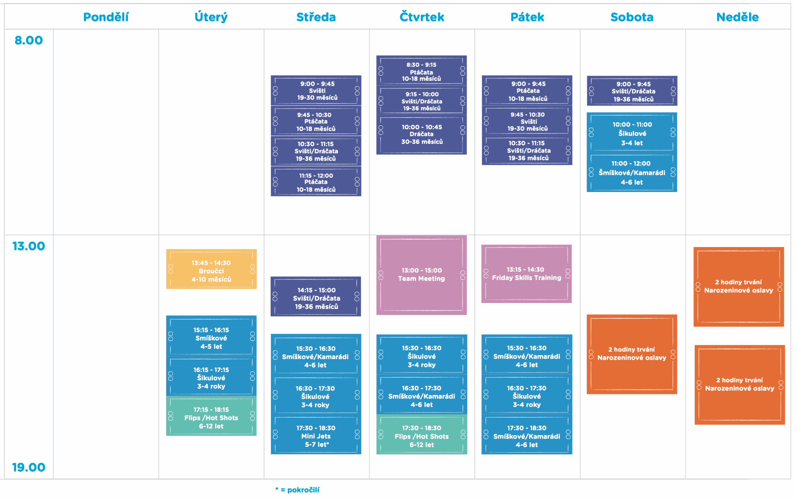 Líbilo se vám u nás? Vyberte si kurz podle věku a časových možností a přidejte se k nám. Čeká vás spousta pohybu a radosti z pokroku!
